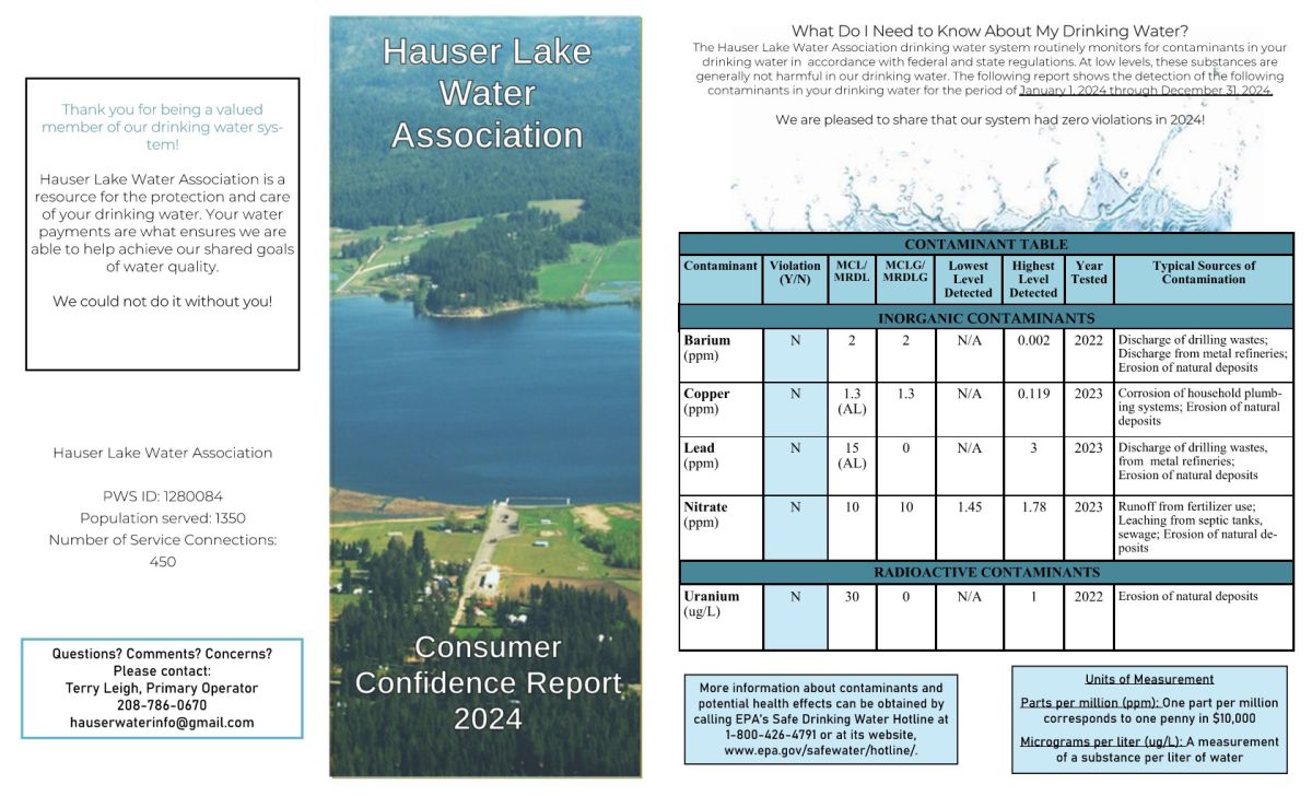 - CCR - Hauser Lake Water Association - 2024 ( PDF / 1,166 KB )